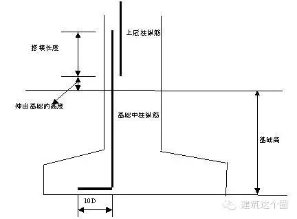基礎(chǔ)插筋=基礎(chǔ)底板厚度-保護(hù)層+伸入上層的鋼筋長(zhǎng)度+Max{10D,200mm}