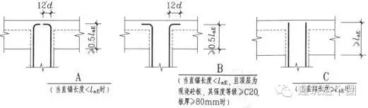 a、內(nèi)側(cè)鋼筋錨固長(zhǎng)度為直錨(≧Lae):梁高-保護(hù)層 ≧1.5Lae