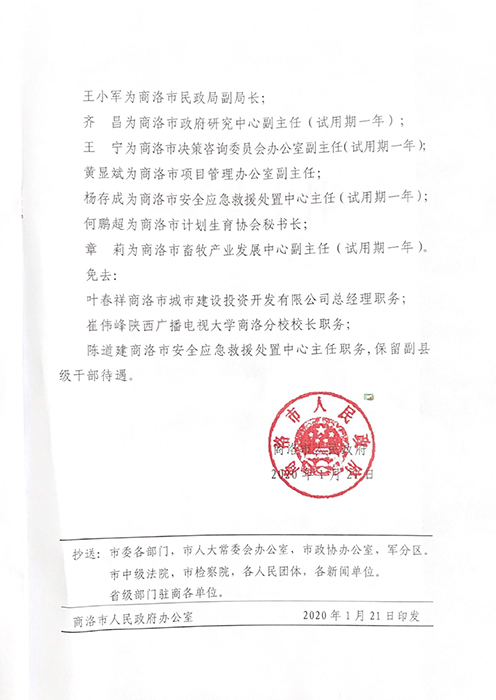 下一篇:商洛市城市建設投資開發(fā)有限公司關于李進等四名同志任免職的通知