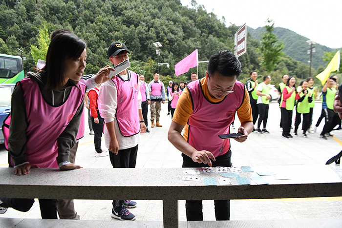 19日上午,全體黨員、員工首先乘車來(lái)到終南山拓展基地,集體參加了“凝心聚力”拓展訓(xùn)練。53名學(xué)員分別組成雲(yún)漢隊(duì)和雄鷹隊(duì),兩隊(duì)集思廣益,各自形成隊(duì)名、隊(duì)旗、口號(hào)及隊(duì)歌并一一展示。在“達(dá)芬奇密碼”拓展項(xiàng)目中,大家充分發(fā)揮團(tuán)隊(duì)力量,隊(duì)友間相互信任、不斷嘗試、在反復(fù)摸索和密切協(xié)作下,最終雄鷹隊(duì)以3比2獲勝。充分展現(xiàn)了城投人永不言棄、進(jìn)無(wú)止境的團(tuán)隊(duì)精神。